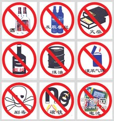 禁带物品: 枪支(含各种仿真玩具枪、枪型打火机胶其它各种类型的带有攻击型的武器)弹药、军械、警械、管制刀具(任何刀具)、爆炸物品、易燃易爆物品、剧毒物品、放射性物品、腐蚀性物品、危险溶液及国家规定的其它禁运物品。